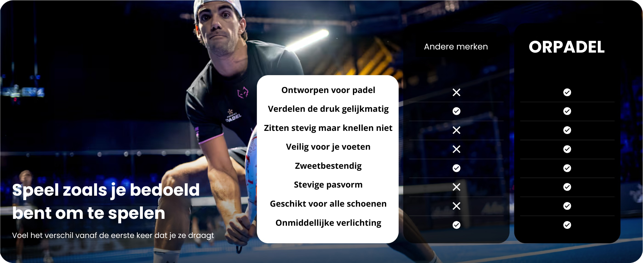 Ze zijn ideaal voor pádelspelers die vermoeidheid in de voeten voelen, pijn in de hielen of voetzool, of die gewoon meer comfort willen tijdens de wedstrijden.